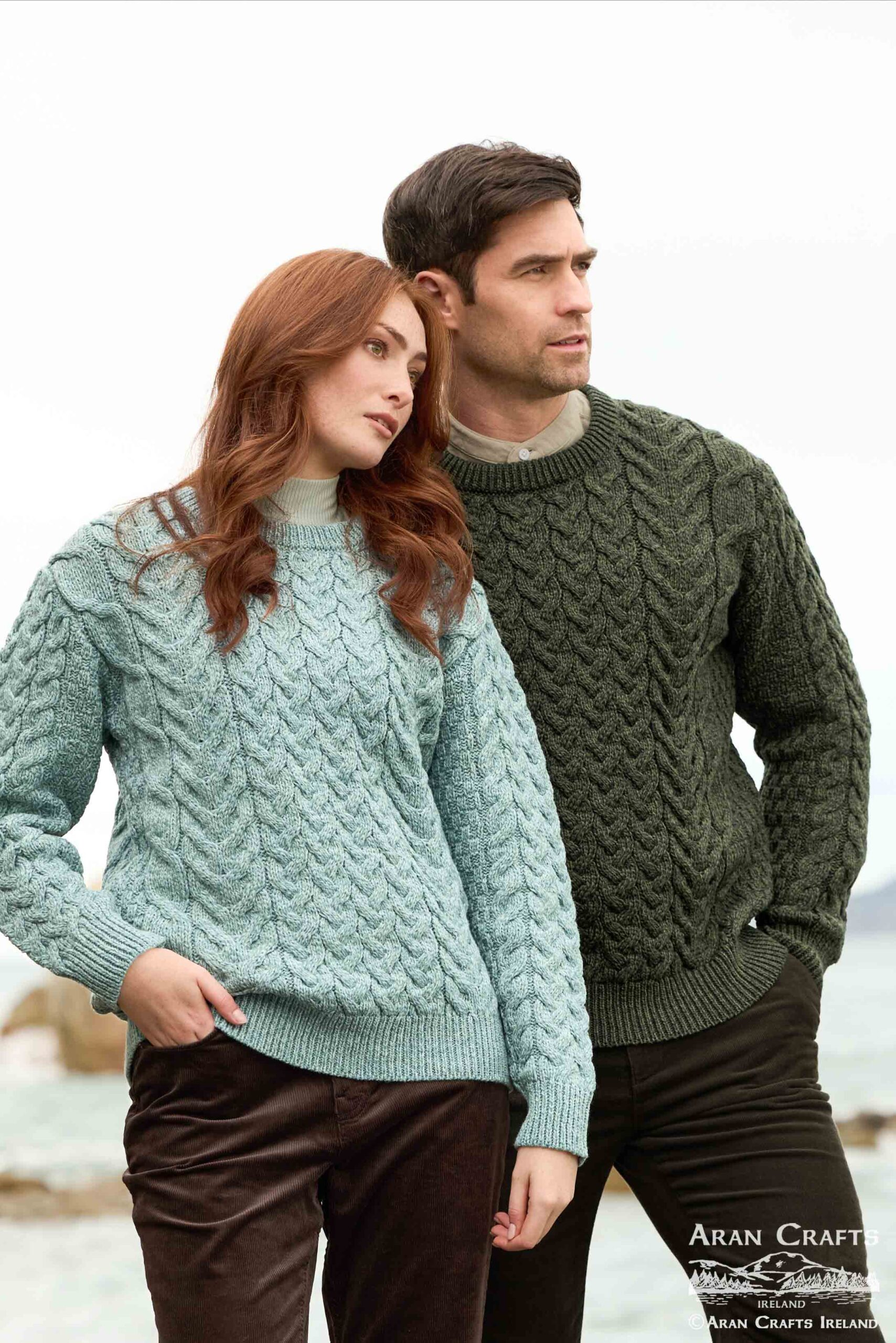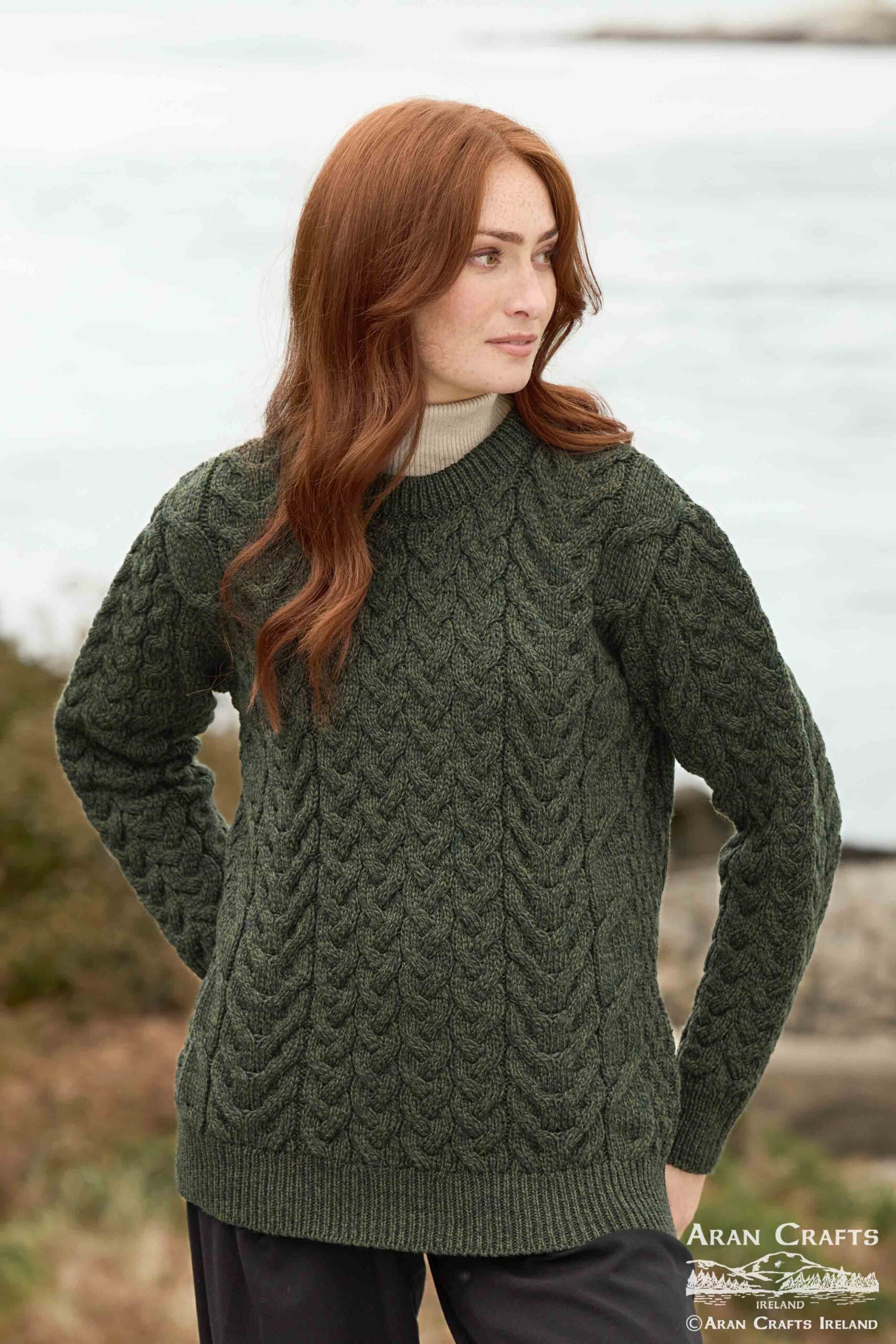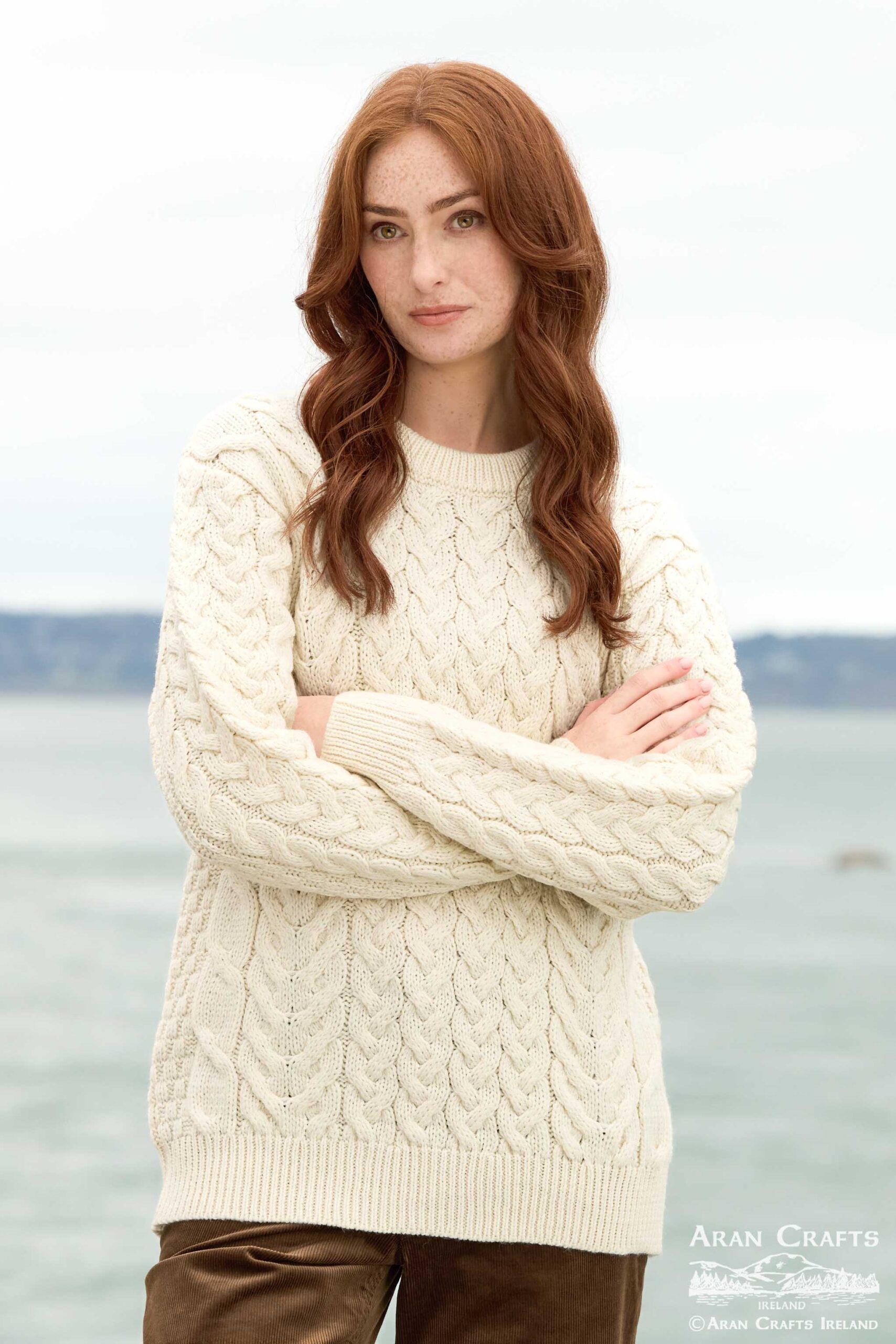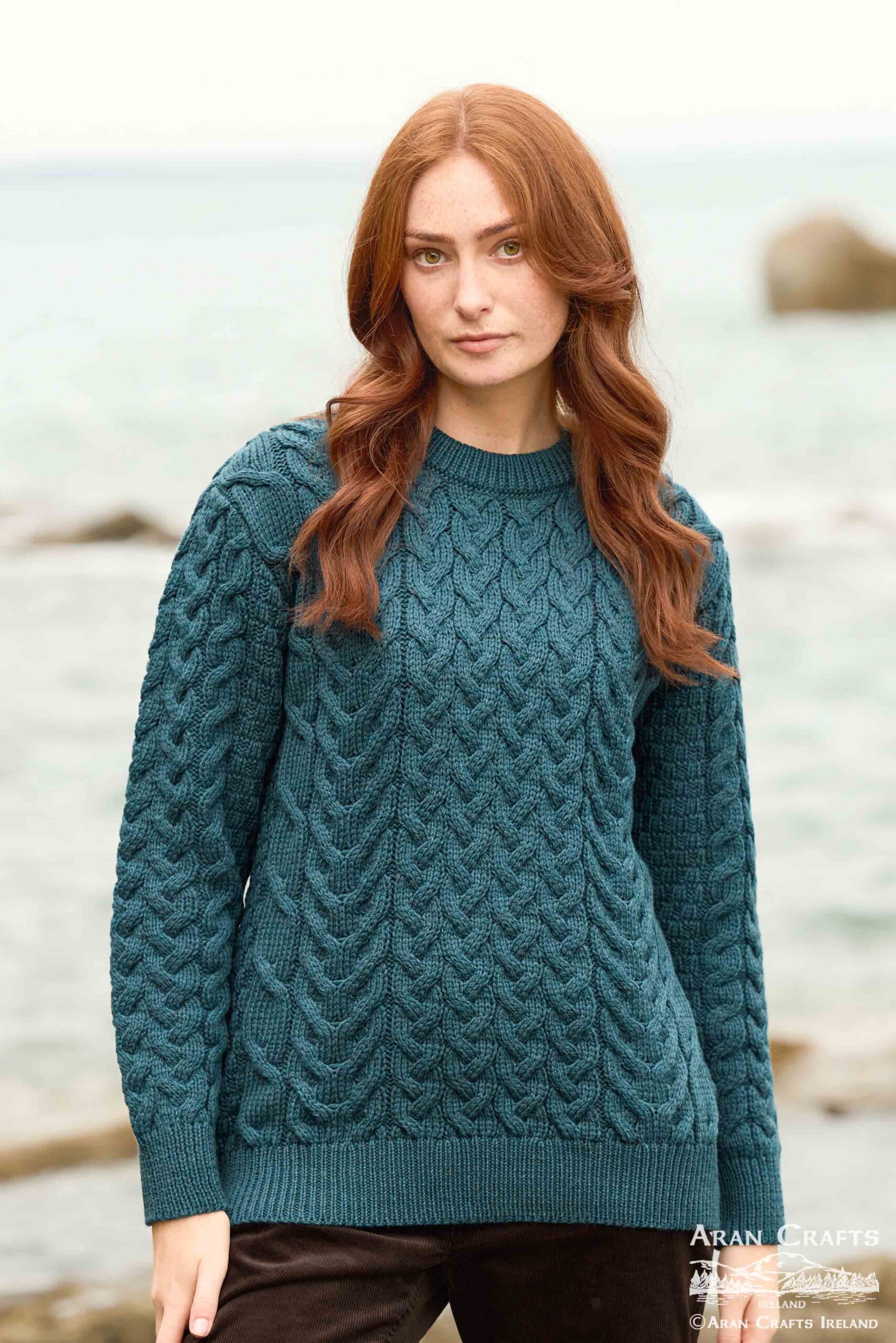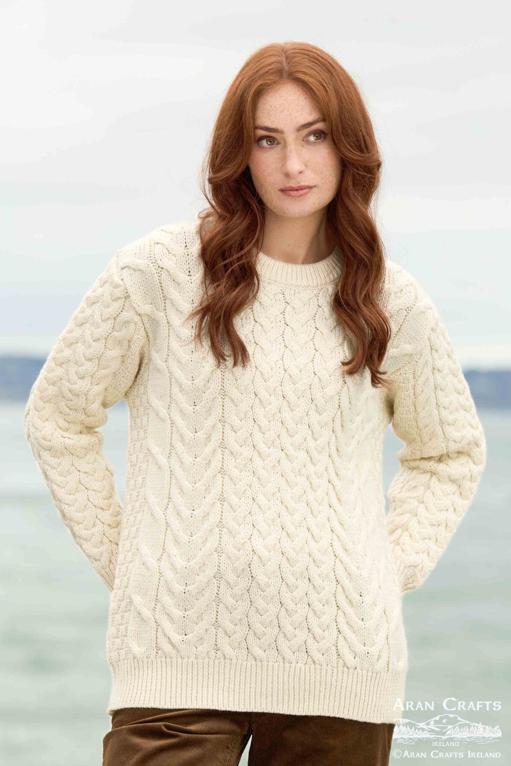 Beautiful chunky cable knit unisex sweater crafted from 100% Merino wool, featuring traditional Aran stitches.