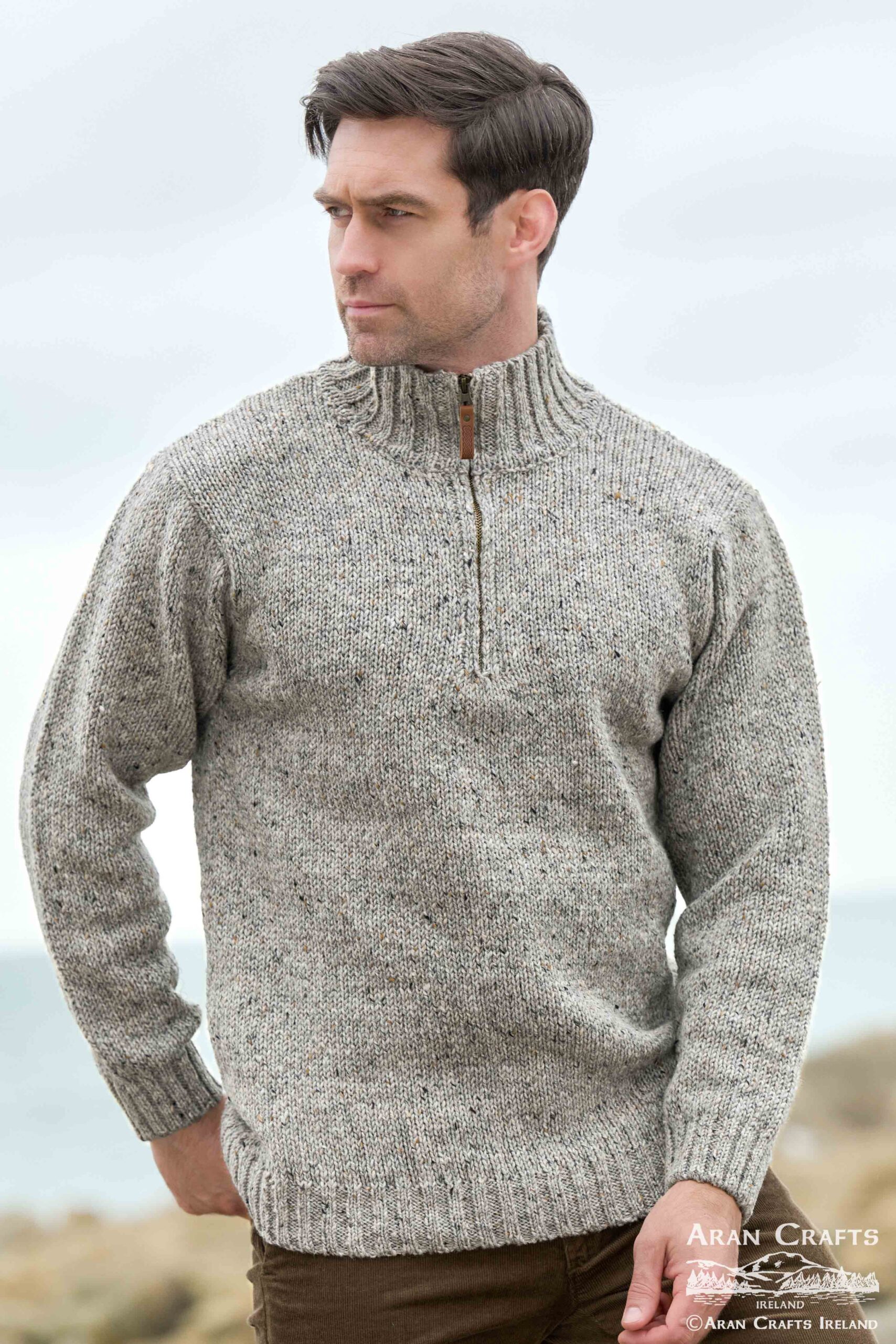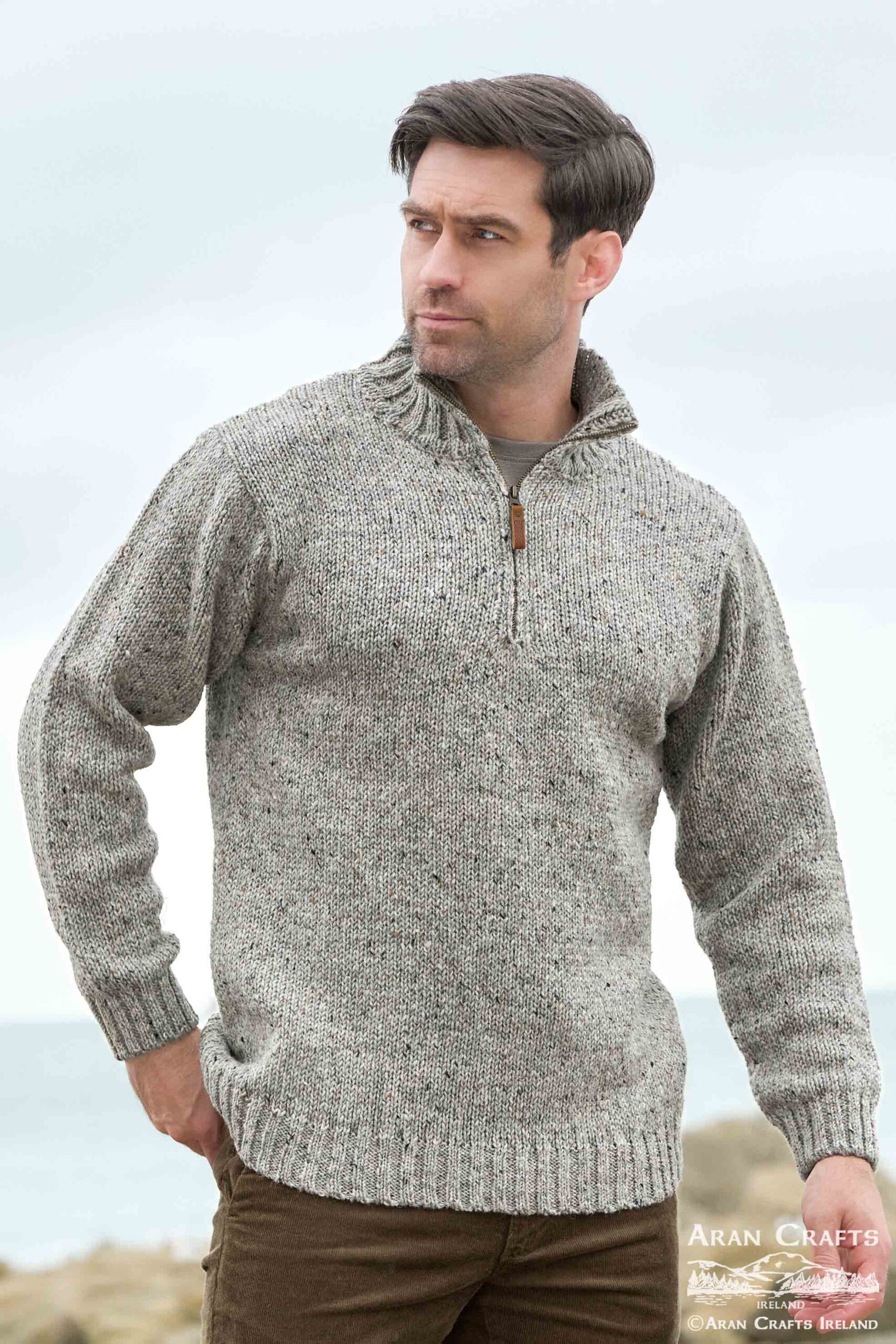 The yarn used is spun in the famous Donegal Yarns Spinning mill in Kilcarra, County Donegal, Ireland. This Irish man’s sweater comes to you knit in 100 % Donegal wool from our own spinning mill on the North West Coast. The wool has fleck throughout which gives it it’s very own special character. This mans 100% Irish wool jumper has a half zip neckline which can be worn open or closed for extra warmth.